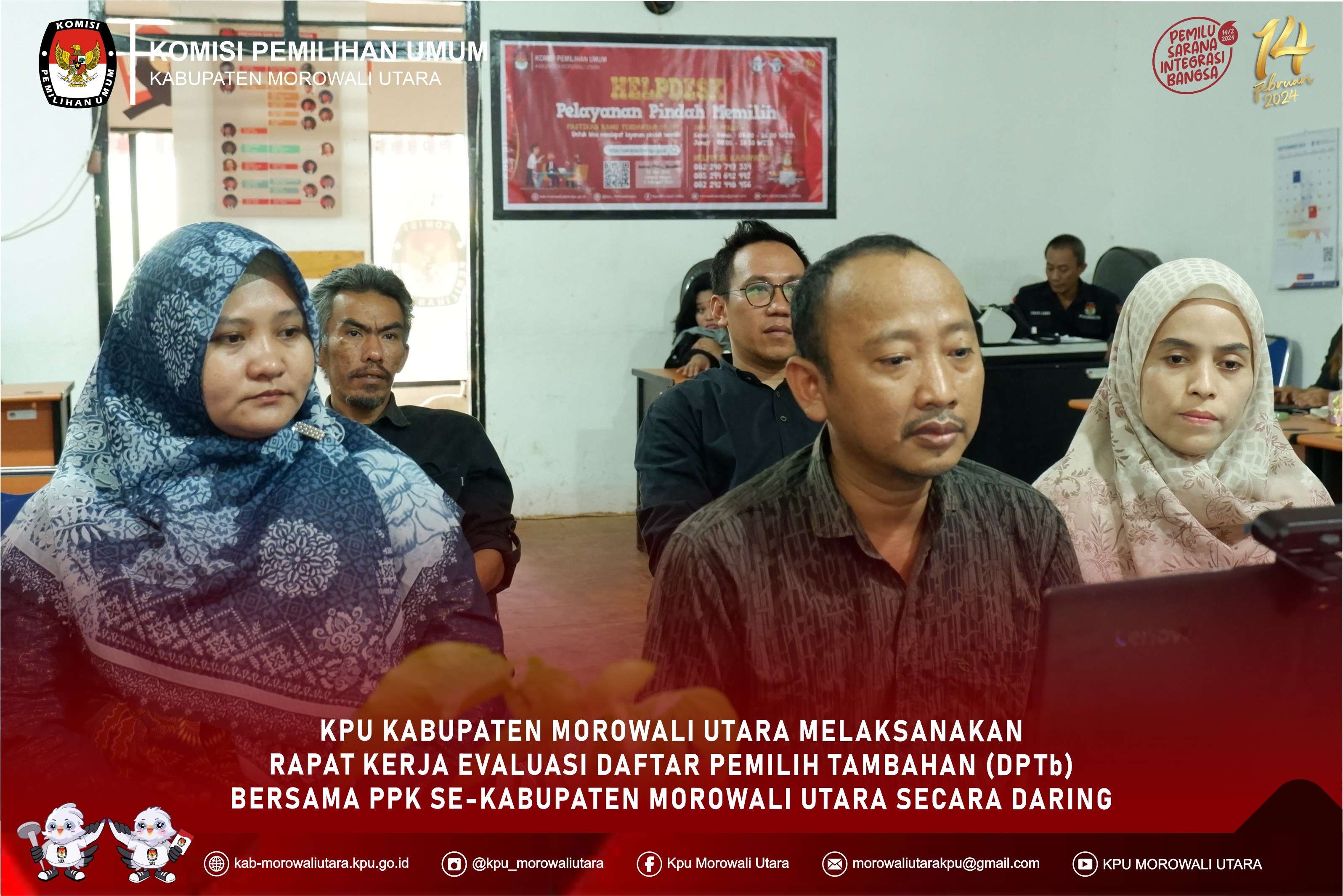 Kolonodale- kab-morowaliutara.kpu.go.id KPU Kabupaten Morowali Utara melaksanakan Rapat Kerja Evaluasi penyusunan Daftar Pemilih Tambahan (DPTb) pada Pemilu Tahun 2024 bersama PPK Se-Kabupaten Morowali Utara yang bertempat di Ruang Rapat Kantor KPU Kabupaten Morowali Utara. Rabu, 6 September 2023.