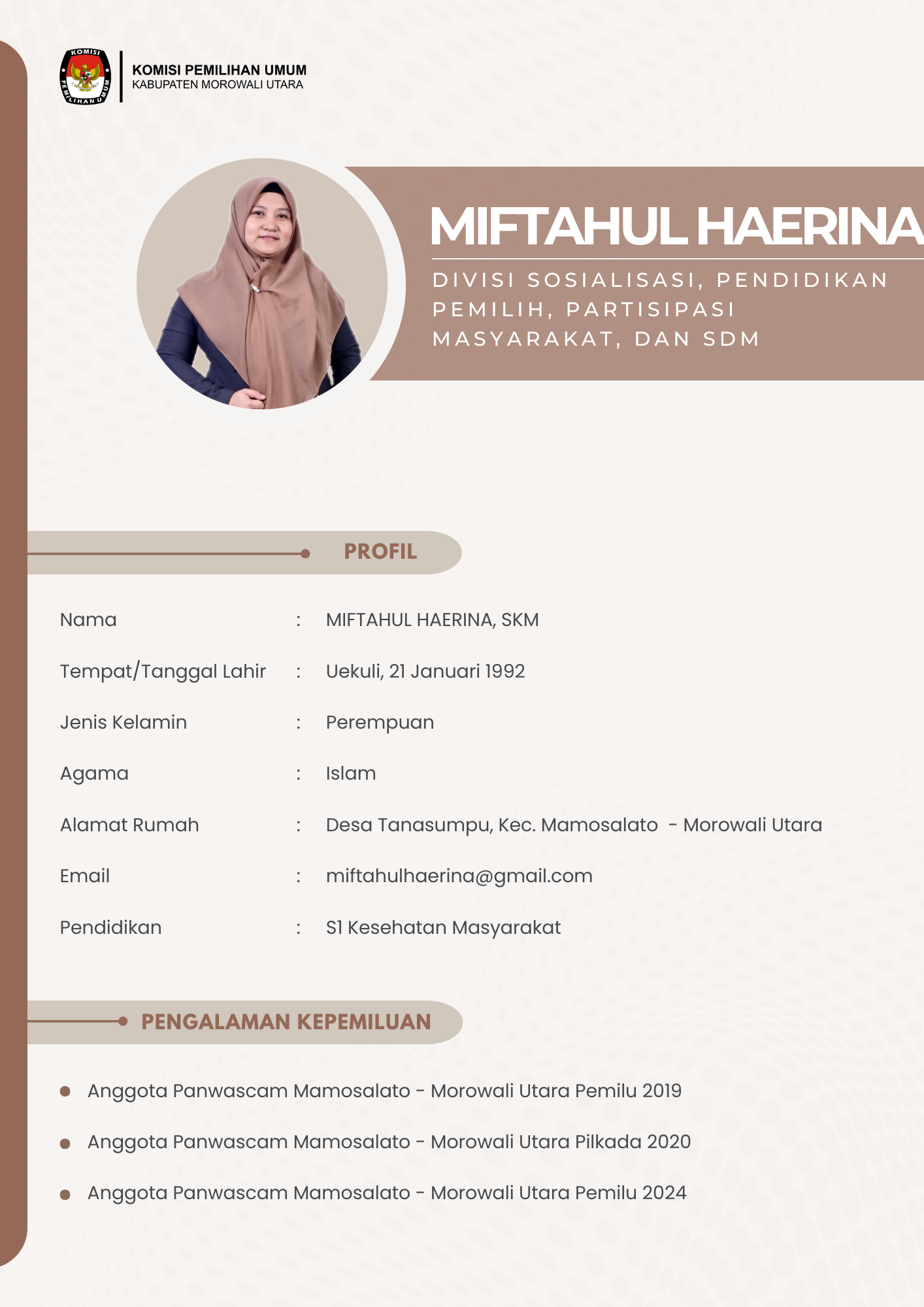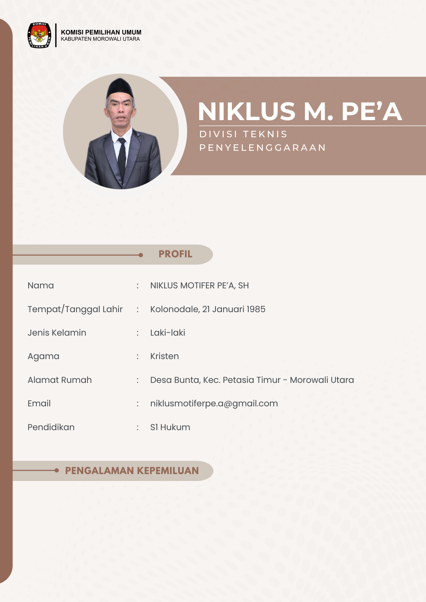 PROFIL KETUA DAN ANGGOTA KPU KABUPATEN MOROWALI UTARA PERIODE 2023-2028